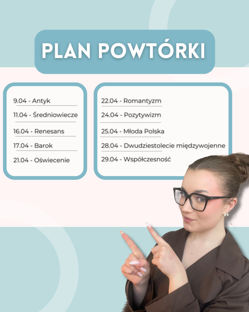10 lekcji online, notatki i quizy ze wszystkich epok na maturę z polskiego. Konkretne omówienie najważniejszych pojęć, motywów i fragmentów lektur.